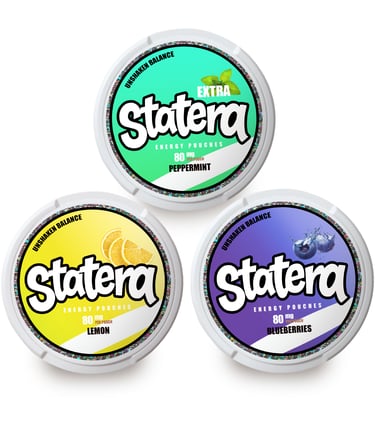 At Statera, we believe balance is the key to success. Our energy pouches are designed to keep you focused and confident, offering steady support throughout your day. Whether at work, during a workout, or on the go, Statera provides the energy you need without the crash. With premium ingredients and great flavors, each pouch delivers a sustainable energy boost that blends seamlessly into your lifestyle. We understand that success comes from feeling your best in every moment. That’s why we focus on providing lasting energy, helping you stay motivated, and allowing you to conquer the day with confidence.